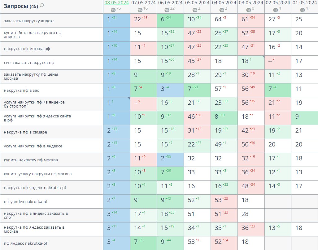 Услуги по увеличению показателей ПФ